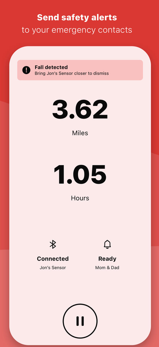 Users can customize their alerts as well as set up multiple emergency contacts within the Adventure SOS mobile app. Users can choose to have an e-mail or text sent to their selected emergency contact(s) each time they start and stop their activity along with their current location. If the user needs to dismount temporarily they can simply pause their ride and then resume once they are ready. The Adventure SOS sensor is NOT required for start and stop alerts.