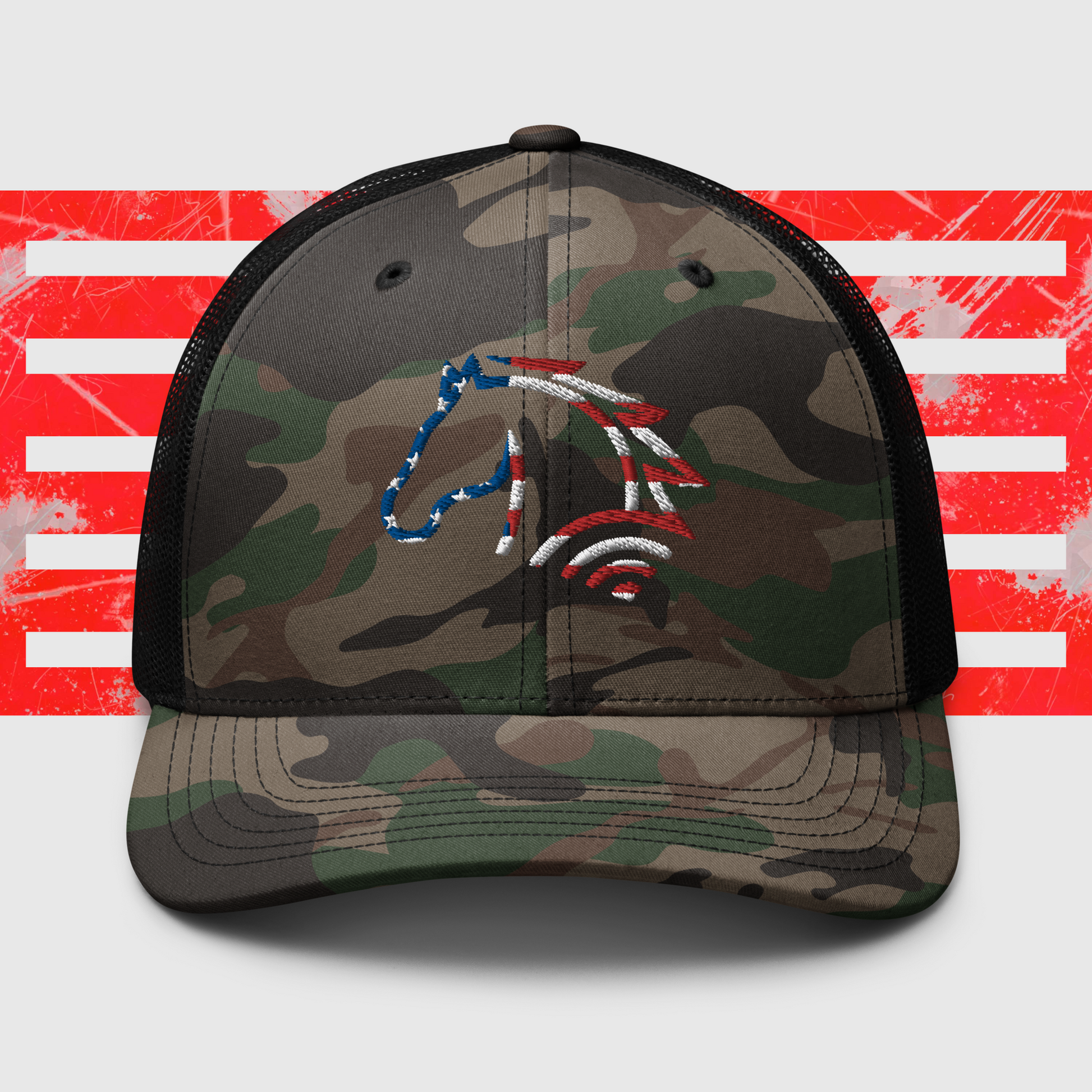 EquineTrac is a proud USA company. From the arena to a night out. This American Flag EquineTrac logo trucker cap looks great and keeps your head cool! One size fits all snap back.